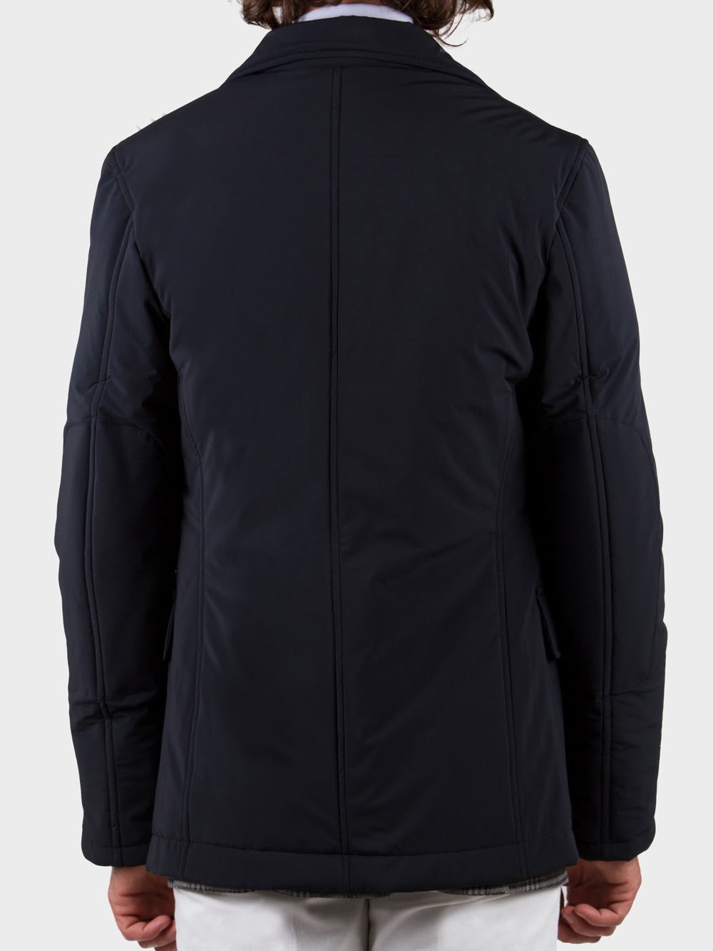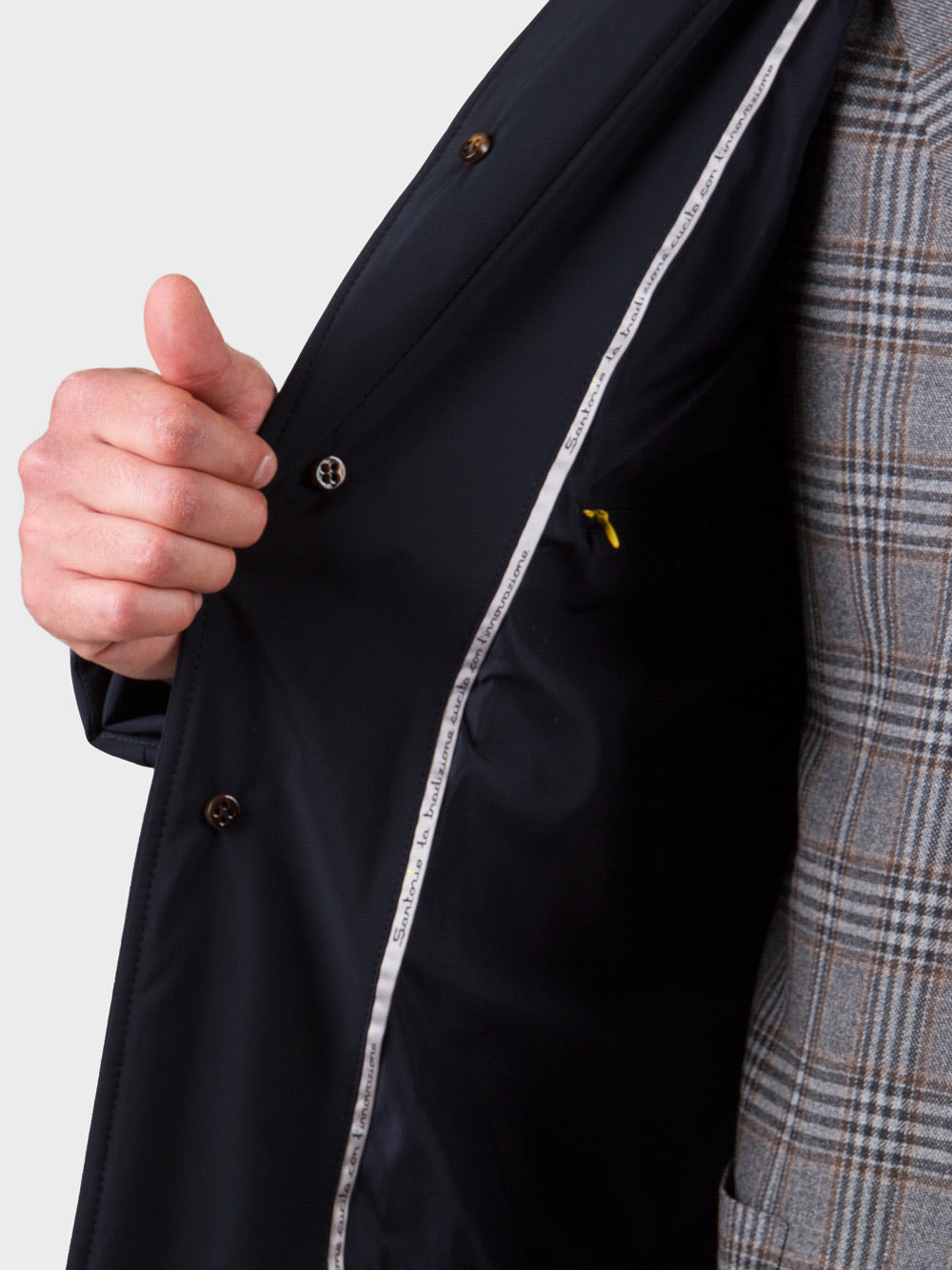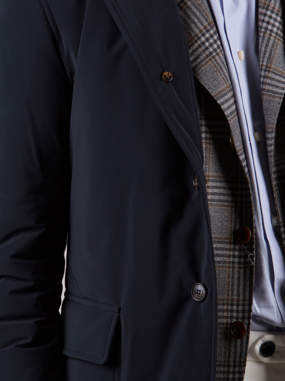 95% вискоза, 5% полиуретан - прорезные накладные карманы с клапанами - коричневые пуговицы corozo на подкладке Рост модели 1,83 см, размер одежды 48